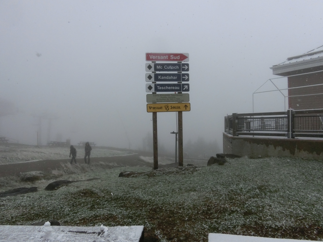 10月初旬ですが、途中から雪が降りだし、頂上はこの写真のような有り様です。