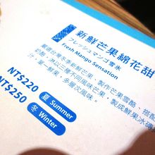 メニューには「フレッシュマンゴ雪氷」と表記されています。