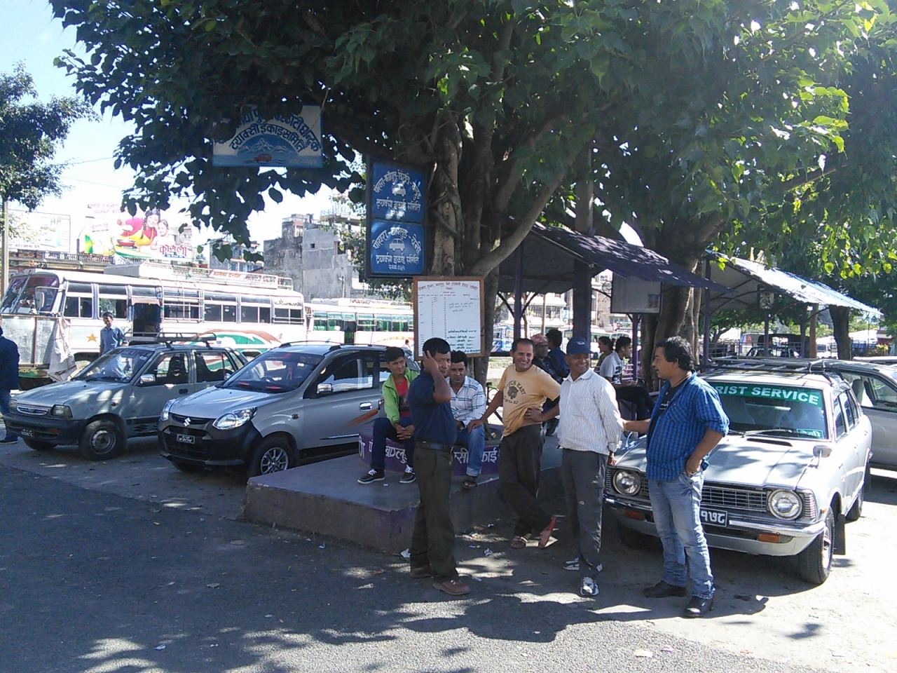 ?レイクサイド通りを南へ向かうBagar行きの市バスに乗りプリティビチョーク近くのシティバススタンドまで行き(20Rs)、乗り換える。