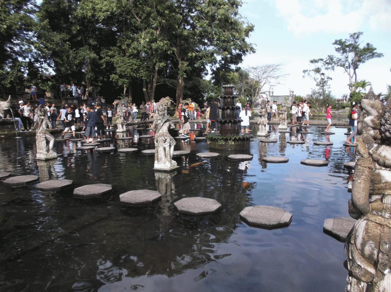 バリの文化を模した石像と水がマッチしていてとても綺麗。
