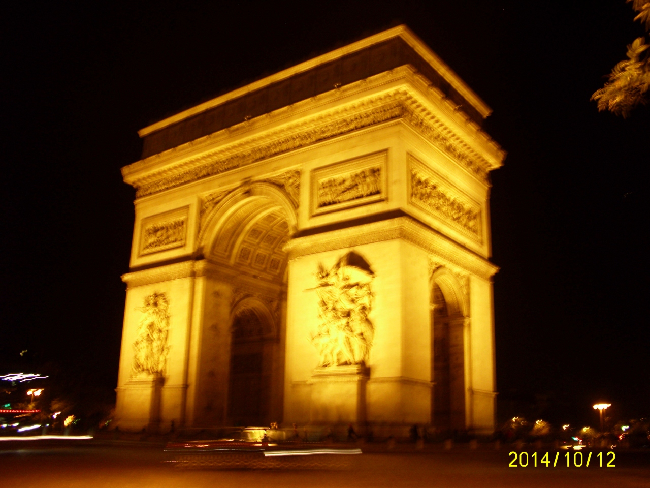 パリと言えば、エッフェル塔とこの凱旋門ですね。思い起こせば数十年前、まだ若かりし時に上まで登り、放射線状のバリの街並みに感動したことを思いだしました。体力も自信がなくなった今回は近くから見るだけに。シャンゼリゼ通りの遠く端の方から見る凱旋門も素敵です。