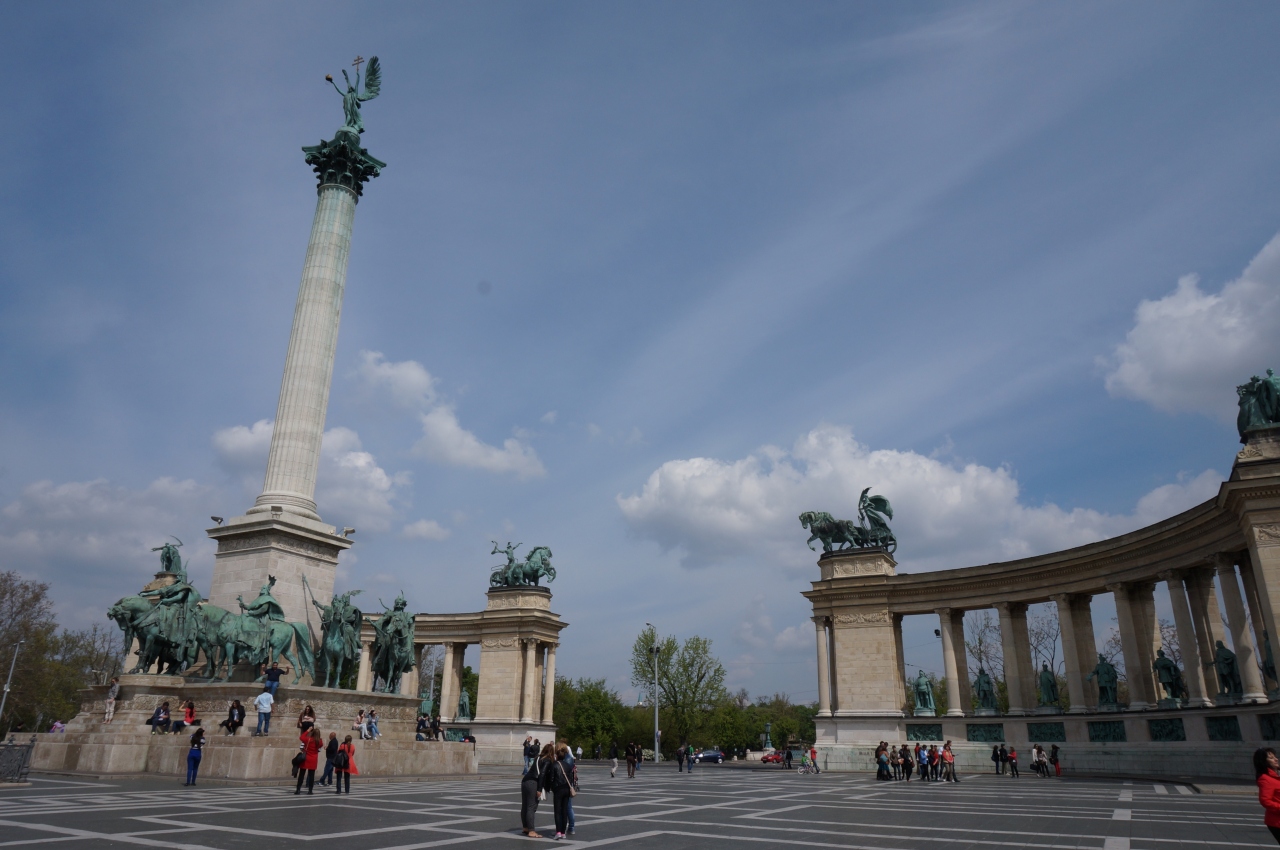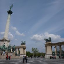 中央に大天使ガブリエルがたちその周りには政治から芸術までハンガリーの英雄14人の像が並んでいます。