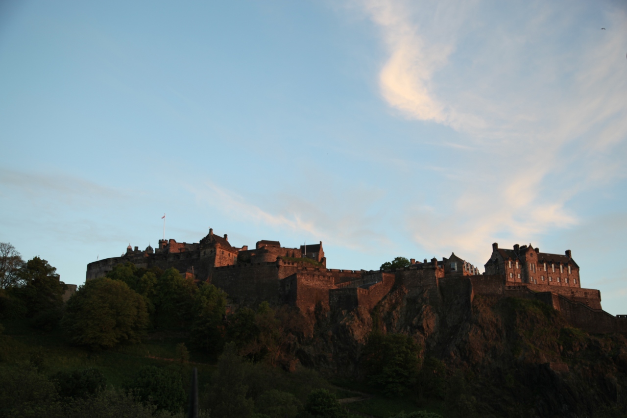 エジンバラに夕方に到着後、憧れのエジンバラ城を、プリンスィスストリートから眺めた時、夕陽に映えて威厳あるその姿に大感激!