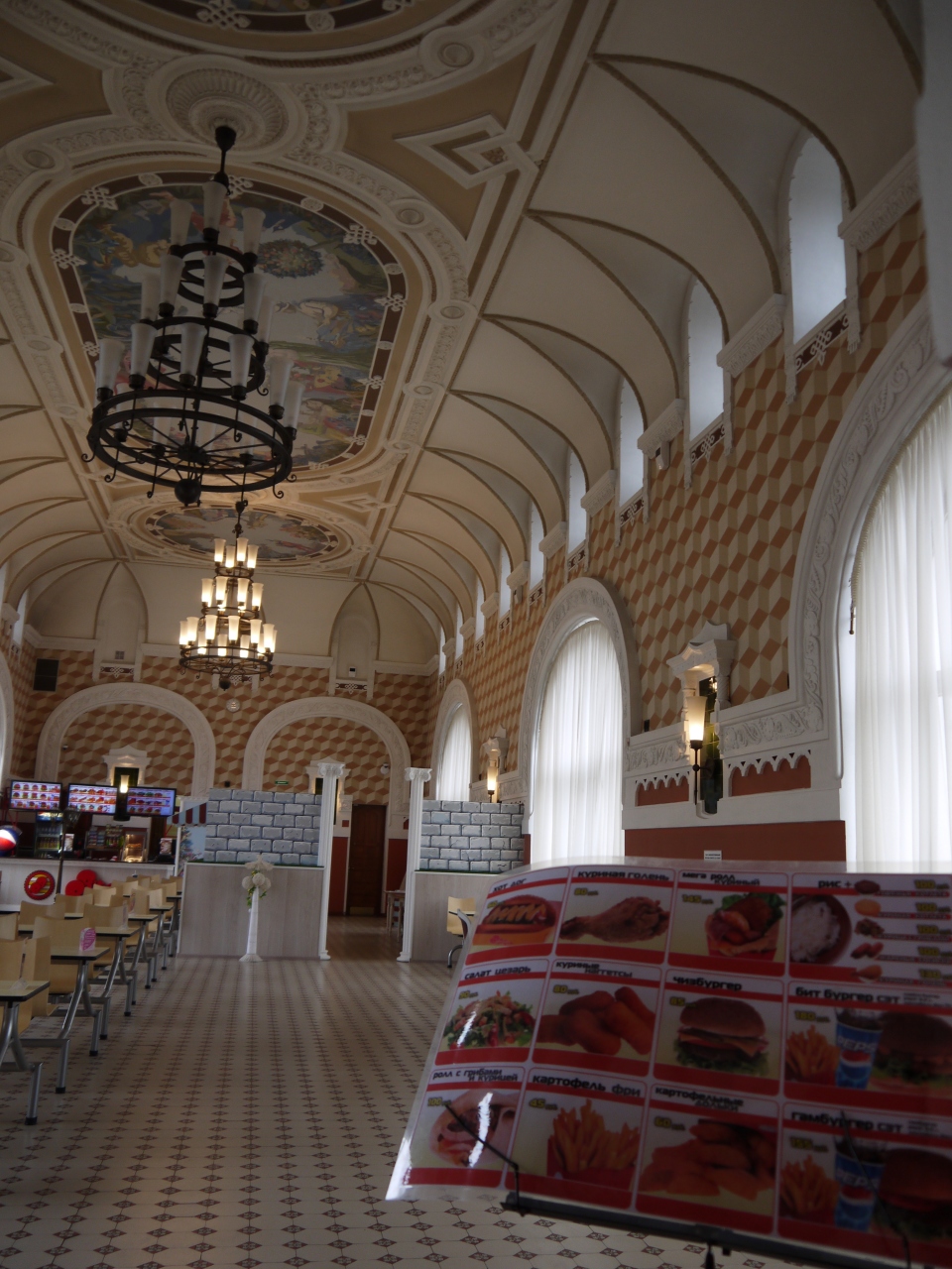 駅は中心地にあり、構内には豪華すぎるハンバーガー屋さんがありました。