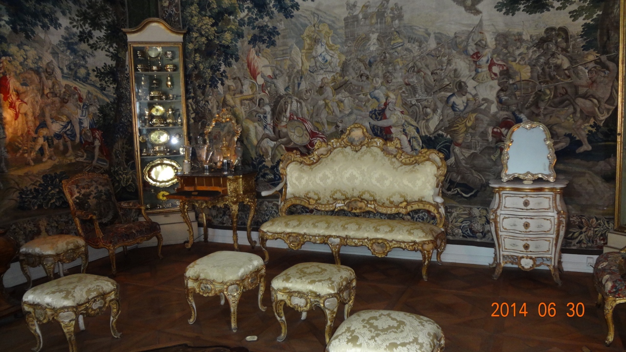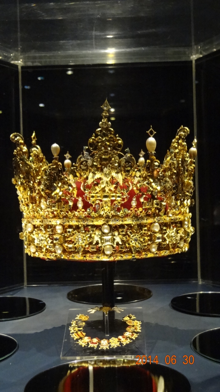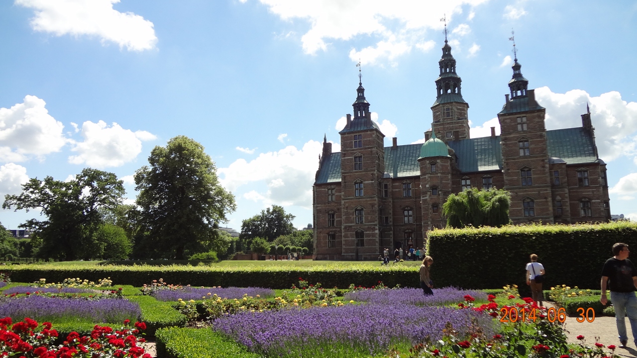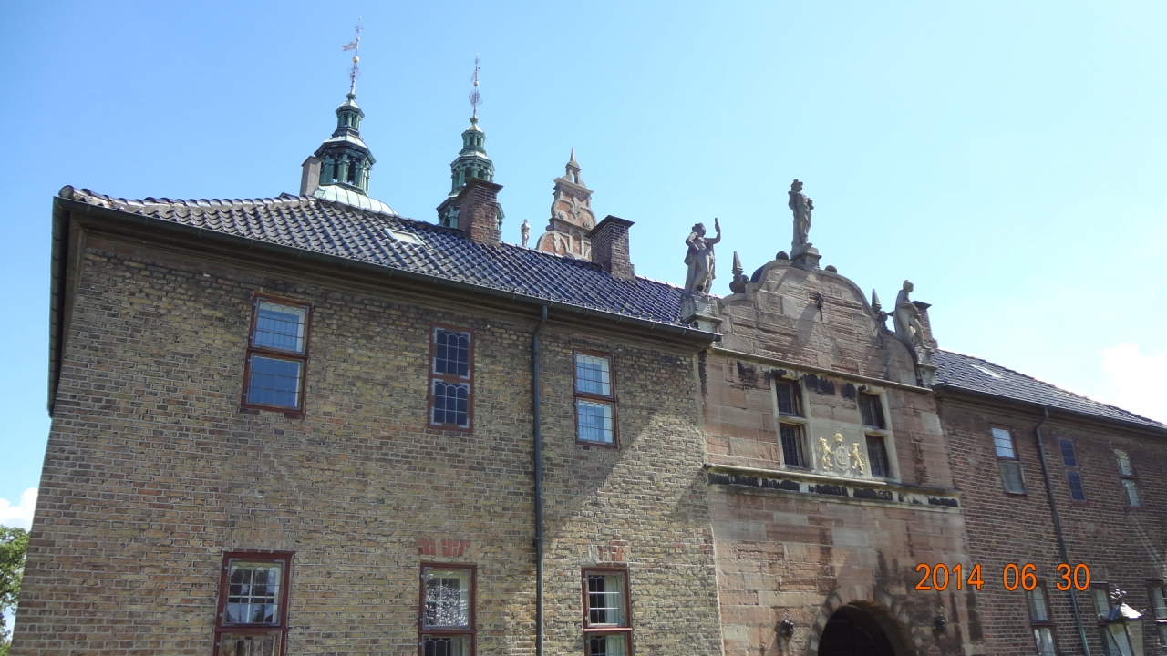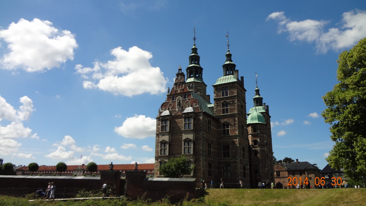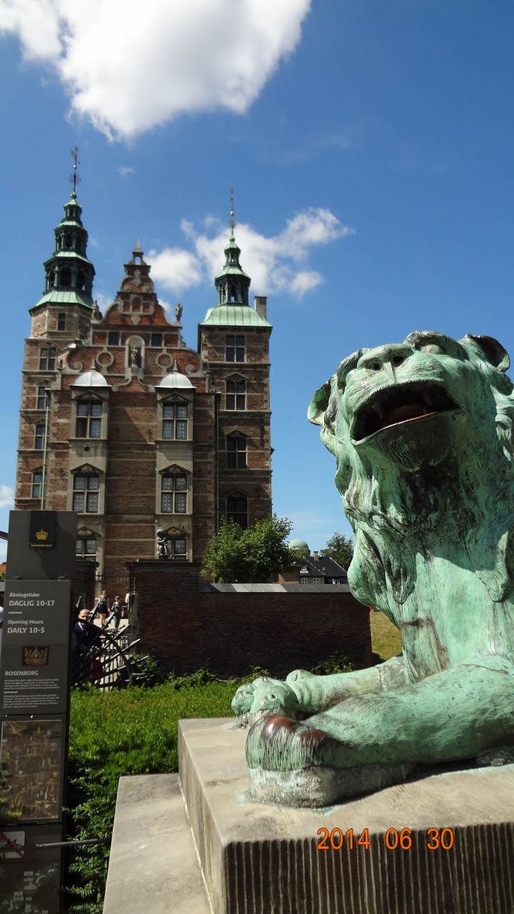 1605年から工事を開始し1634年に完成したオランダ・ルネッサンス様式の建物。1615年、38歳のクリスチャン4世王は、絶世の美女キアステン・ムンク嬢と恋におち、二人の愛の新居として定められたのがローゼンボー離宮。夏の離宮だったが、4世は生涯をここで過ごした。以後、フレデリクス宮殿が建つまでの3代にわたって王の居城となった。地下の宝物殿にあるきらびやかな宝飾品に圧倒された。コペンハーゲンカードで入場可。