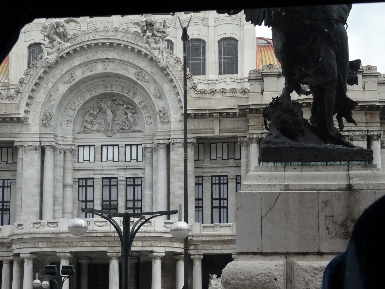 「ベジャス アルテス宮殿」アラメダ公園近くで、白大理石のあまりに美しすぎる?建物です。らせんを描くようなアール・ヌーボー建築の外観です。劇場と一部ギャラリーに「なっています。中は、アール・デコで、シケイロス、リベラ、タマヨらの壁画があります。