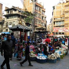 ここぞ旧市街の中心、ここを外してカトマンズに来たとは言えない場所のひとつだと思います。6本もの道が交わり、当然のごとく人もリキシャもバイクも集まってきてとても賑やかです。ぐるりと周りを見渡せば歴史を感じさせてくれる建物ばかり、一瞬でタイムトリップできます。昼間はバイクの路上駐車が多くの景観的にはいまひとつですが夕方になれば露店の野菜売りも始まり人出もさらに増えて凄まじい喧騒を体感できます。