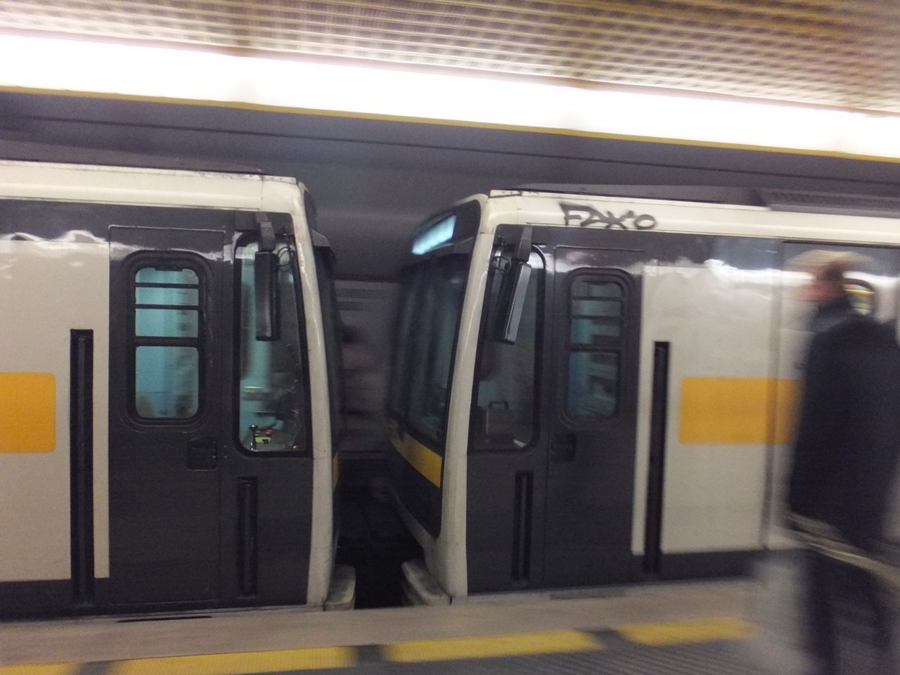 1線で中央駅に向かいます。上下線の乗り場が壁で分断されているので、乗り間違いの心配はないです。