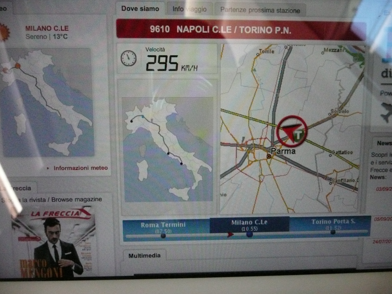 ローマからミラノの移動に、フレッチャロッサを利用しました。荷物置き場が充実していて、スーツケースを持っての鉄道旅行者には大変、便利でした。また、車内ではWIFI接続が可能で、現在地、現在のスピード等、表示できるようになっていました。最近、北陸新幹線でも車内の荷物置き場が出来て、海外の旅行者には便利になりました。