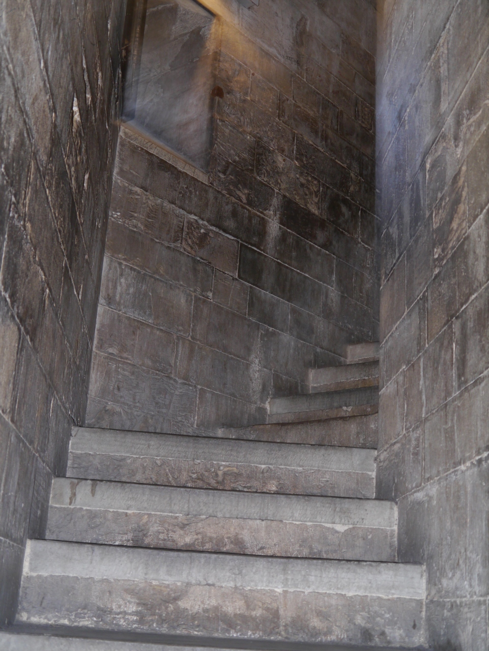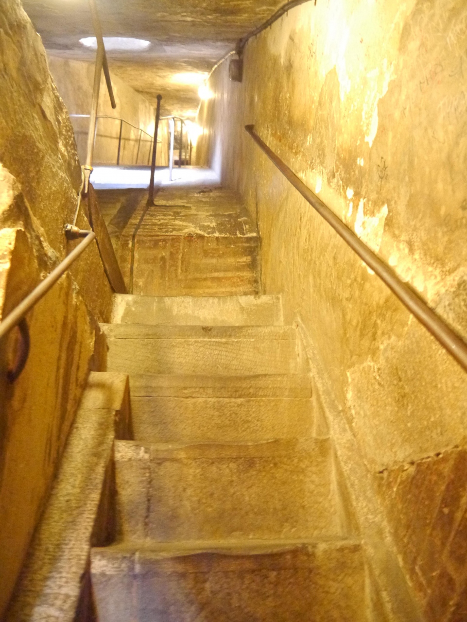 階段は狭く、上から下まで約80m強を自力で上り下りしなければならない。