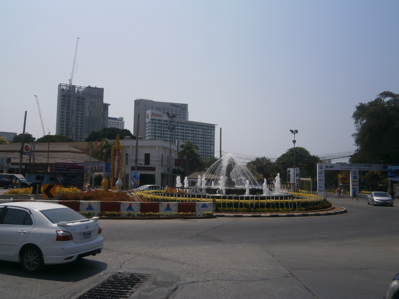 時計回りのロータリーになっています。近くにはソンテウが乗り場があります。ナックルア、ノースロードからスクンビット方面、ビーチロードへも行けます。
