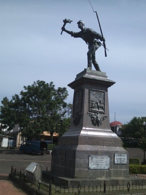 アラフエラの市街地にある、町のみならずコスタリカの英雄として知られるファンサンタマリアを顕彰する公園です。中央には彼の銅像も建っていて、躍動感のある姿がとても右応えあります。解説プレートが台座部分に設置されているのですが、残念ながら英語バージョンの方が割れていて十分に読み取ることが出来ませんでした。