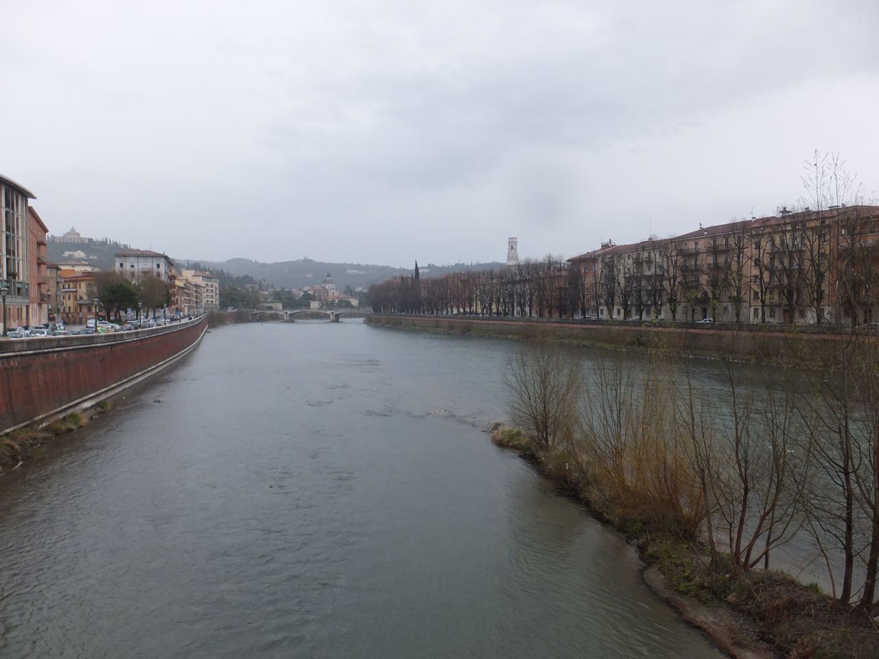 アルプスから流れ出るアディジェ川(日本人には発音しにくいですね)が平野に流れ出る場所で、今はミラノとベネチアの中間で南に行けばボローニャ、北に行けばアルプスのブレンナー峠という鉄道の要衝、昔もおそらく同じような要衝だったことでしょう。