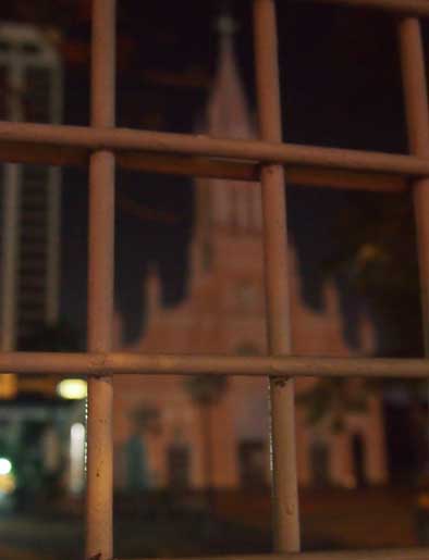 宿泊したホテルに近く、美しい教会だと聞いていたので行ってみました。既に門は閉ざされていて中に入る事が出来ませんでした。残念です。外観はホーチミンのピンクの教会や黄色の教会に似ていました。白とピンクのコントラストがとてもかわいい印象でした。