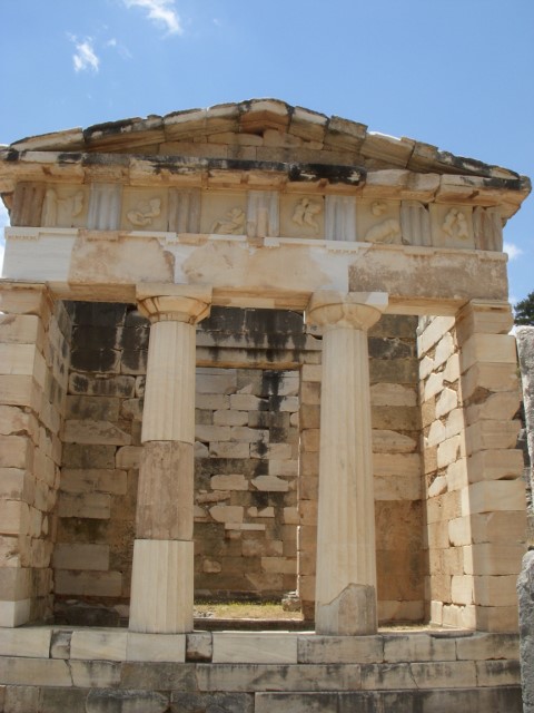 アポロンの御神託によって、アテネ人がマラトンの戦いでペルシア軍に勝利した感謝のしるし、御礼として、アポロン神に捧げられた宝庫。