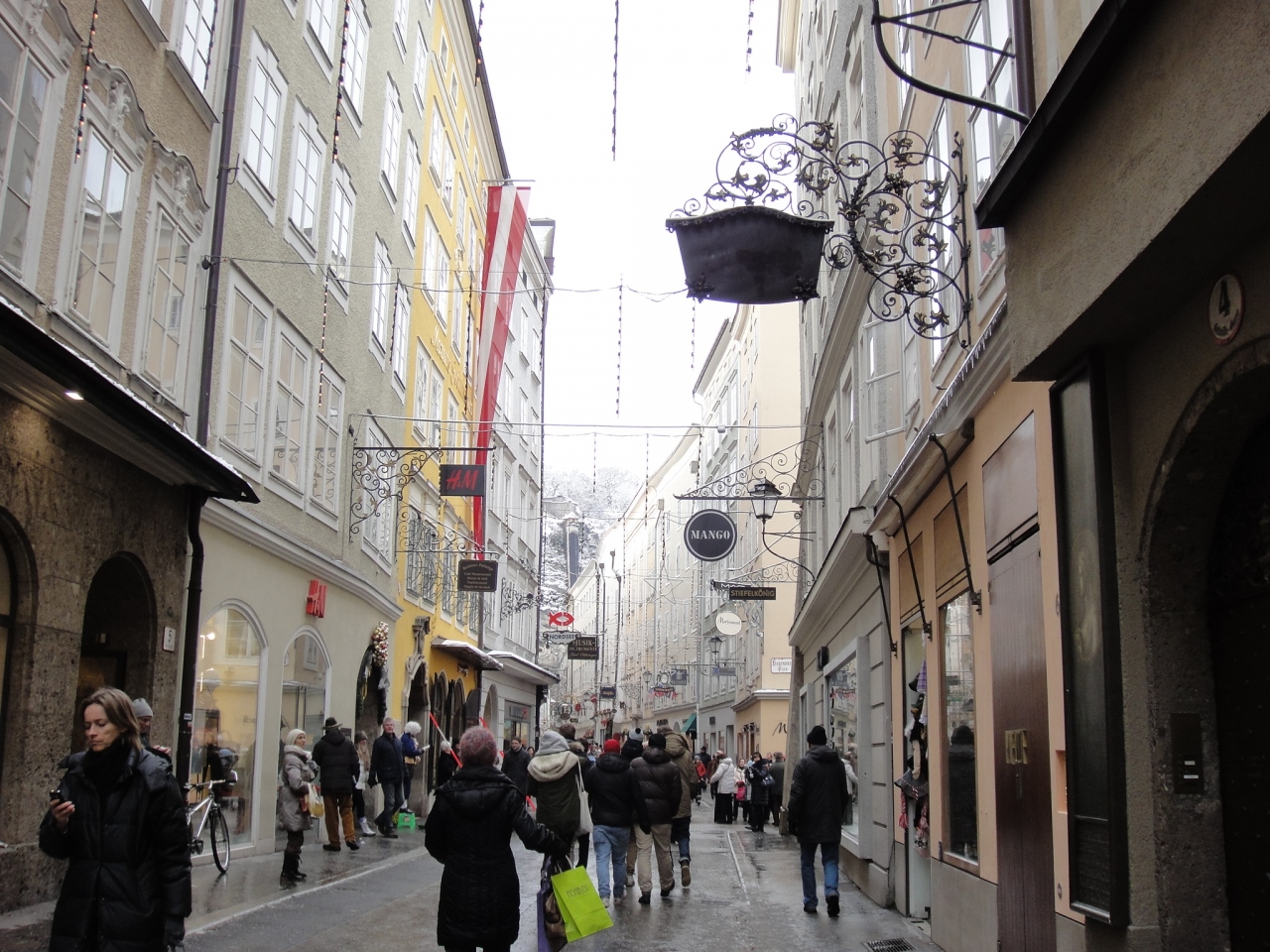 モーツァルトの生家があることで有名な通りですが、ここにはオーストリア料理が味わえる高級レストランや老舗楽器店、スワロフスキーなどの名店も軒を連ねています。おしゃれなお店も多いので、ウインドーショッピングも楽しめます。
