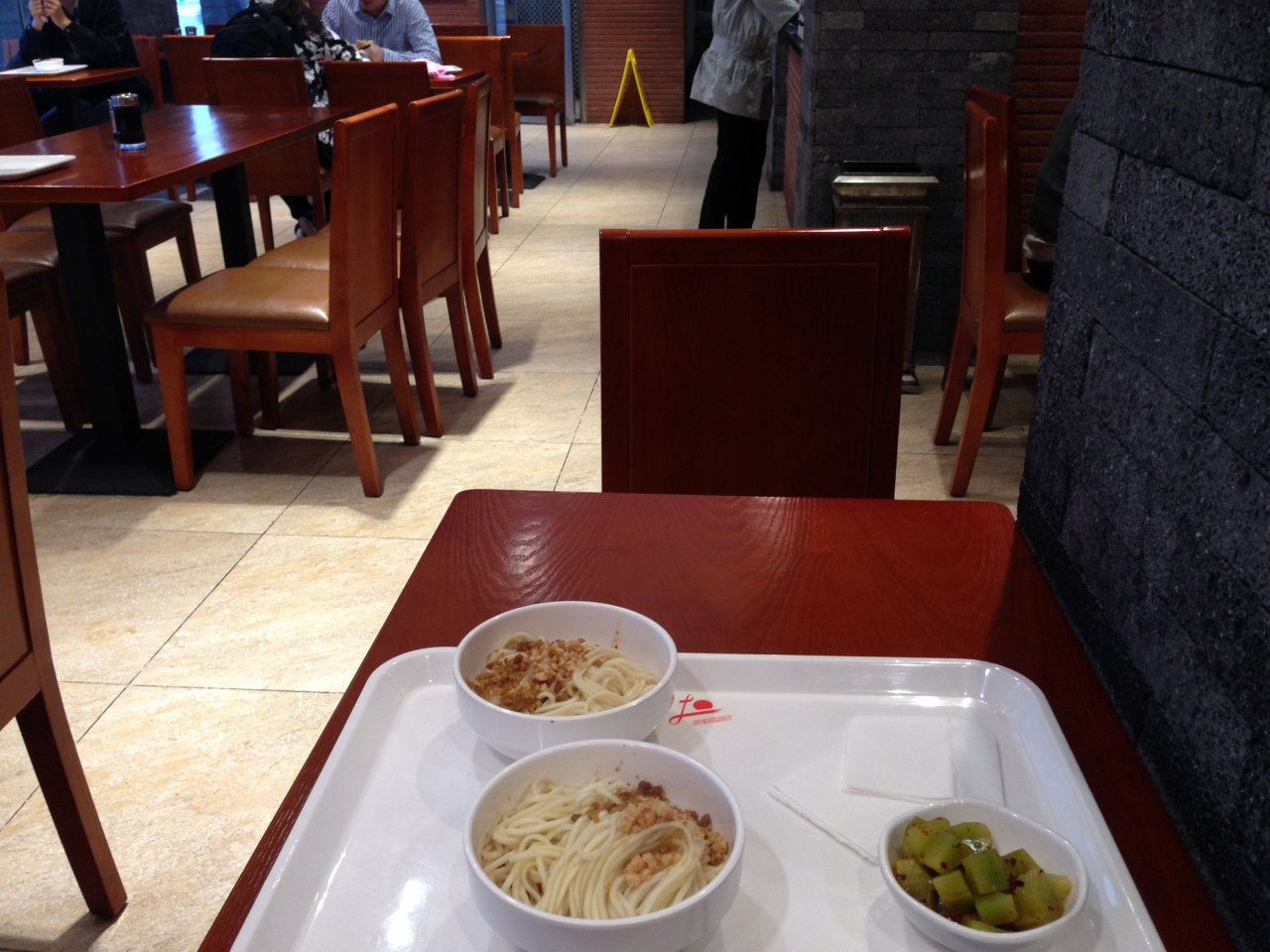 な人で、担担麺2つ(一つ6元50g)と、小菜1元