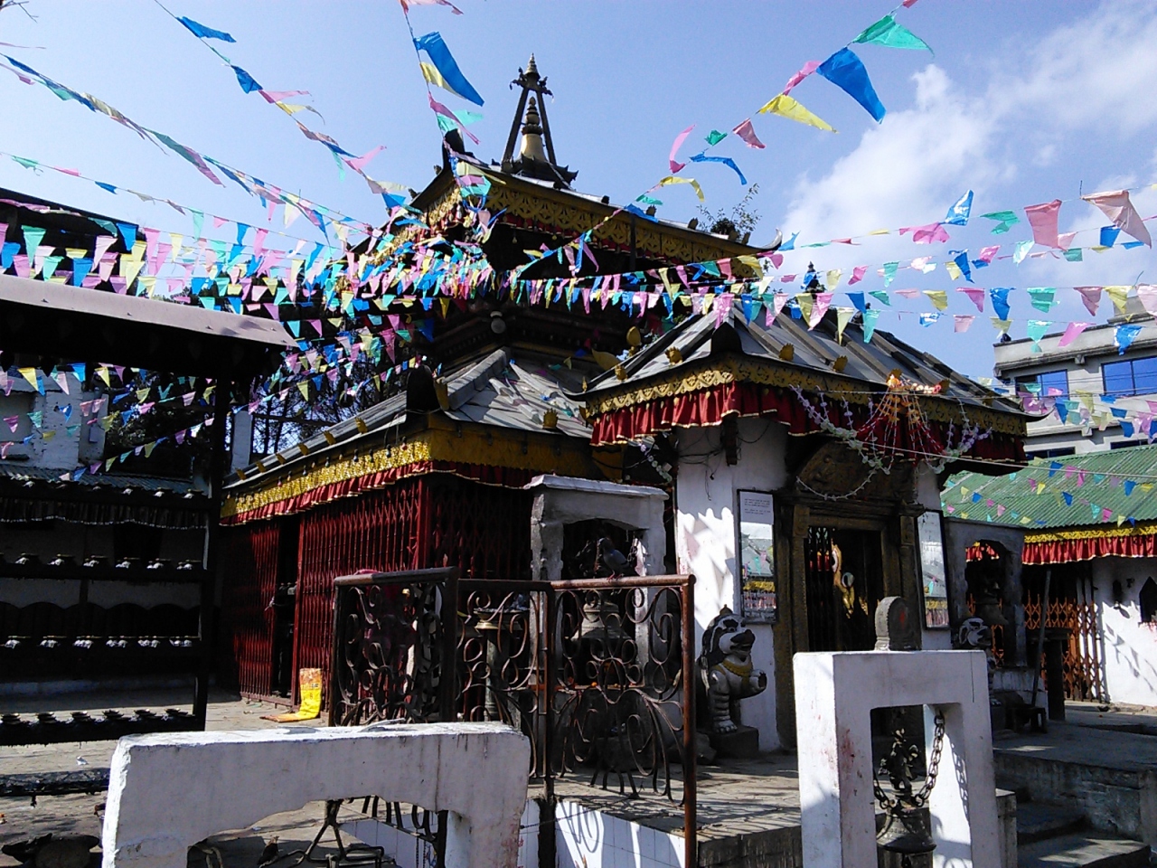 タメルからスワヤンブナートに行くときに通る橋「Sobhavagbati Bridge」を渡ってすぐを右折、100mほど行った左側にあります。入口の白壁の前に“お参りセット”を売る店があるのでわかると思います。お参りに来る人はちらほらいましたが外国人旅行者は珍しいのか「ここはスワヤンブナートじゃないけど大丈夫か?」としきりに言われました。寺院自体は小さくあっという間に見終わってしまいます。本堂にはドゥルガー神が祭られています。