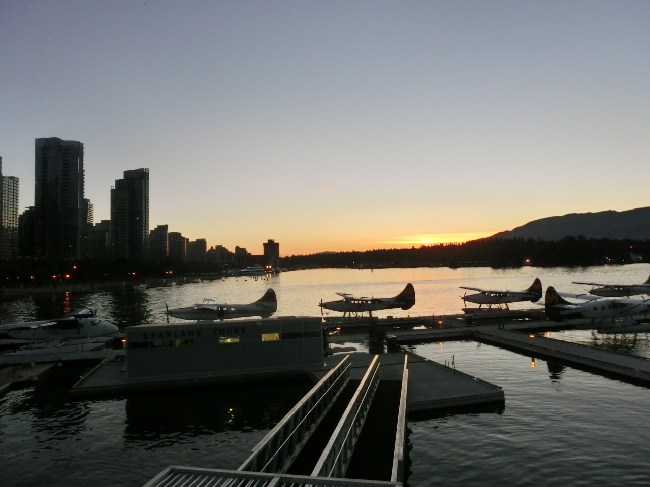で、こちらはながめているだけだったが、夕暮れの港に何機も羽を休めている姿は、絵ハガキのようだった。