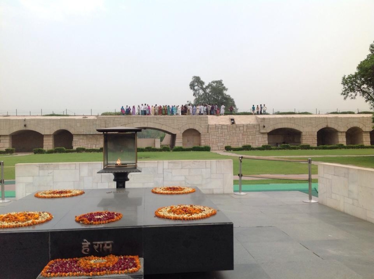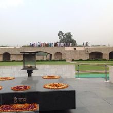 インド独立の父ガンジーのお墓。イギリスからインドを独立させ、カースト制とも戦ったガンジーさんが火葬された場所です。遺灰はガンジス河などに流されたそうです。世界各国から観光に来ていました。周囲は緑に囲まれた広い公園になっていてキレイです。