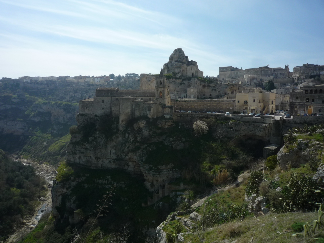 マテーラはグラヴィーナ川の渓谷の断崖にある石灰岩の洞窟を掘って作られた町。