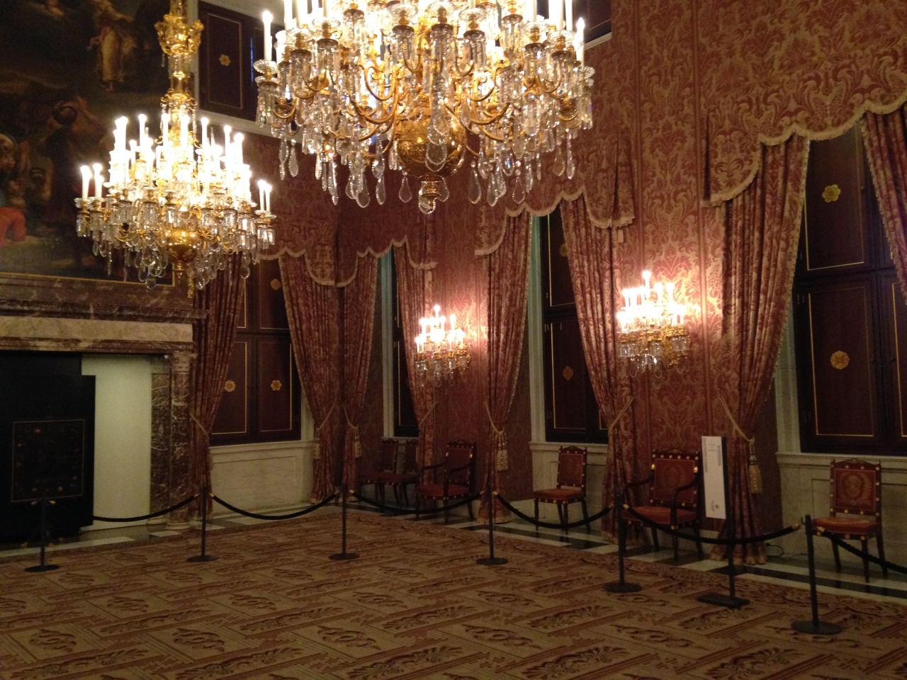 合わせ鏡があり面白かったです。階段を上った建物の中心の大広間は白基調で優雅で素晴らしかったです。その周りは赤の部屋(ほんとうに赤い部屋)で素敵でしたが落ち着かないだろうなと思いました。小さなバックも1階のクロークに預ける必要がありますがカメラは持ち込みOKでした。週末で入るまで30分ほど並びましたが並んだ価値ありました。