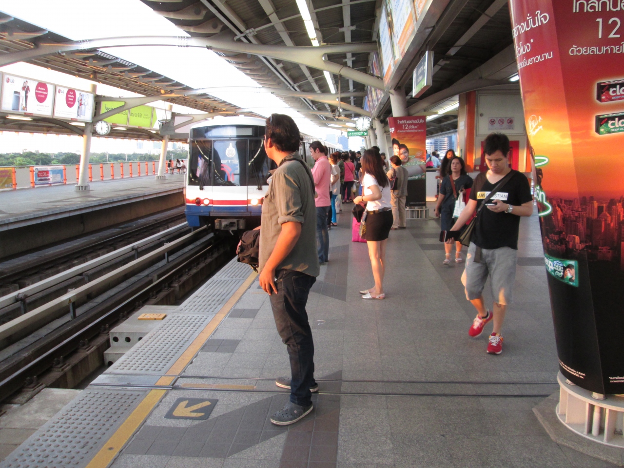 9月の滞在では夕方にウィークエンドマーケットに訪問しました。夕方18時頃になるとマーケットの各店が閉店していくので、買い物を終えた利用客が駅に流れてきます。BTSはモーチット駅で折り返し運転するので待機させられません。