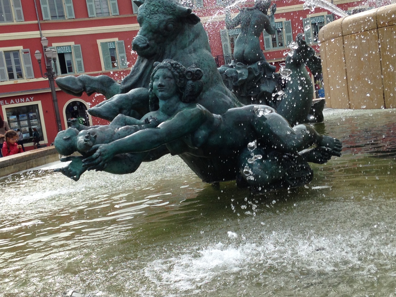 高い柱が数本あり、その上には正座をしたり足を組んでいる人の像があり何でそんなところに?と面白かったです。鳩の糞で頭だけ白い像もあります。噴水には子供をジャンピング・キャッチしている像もあり面白いです。