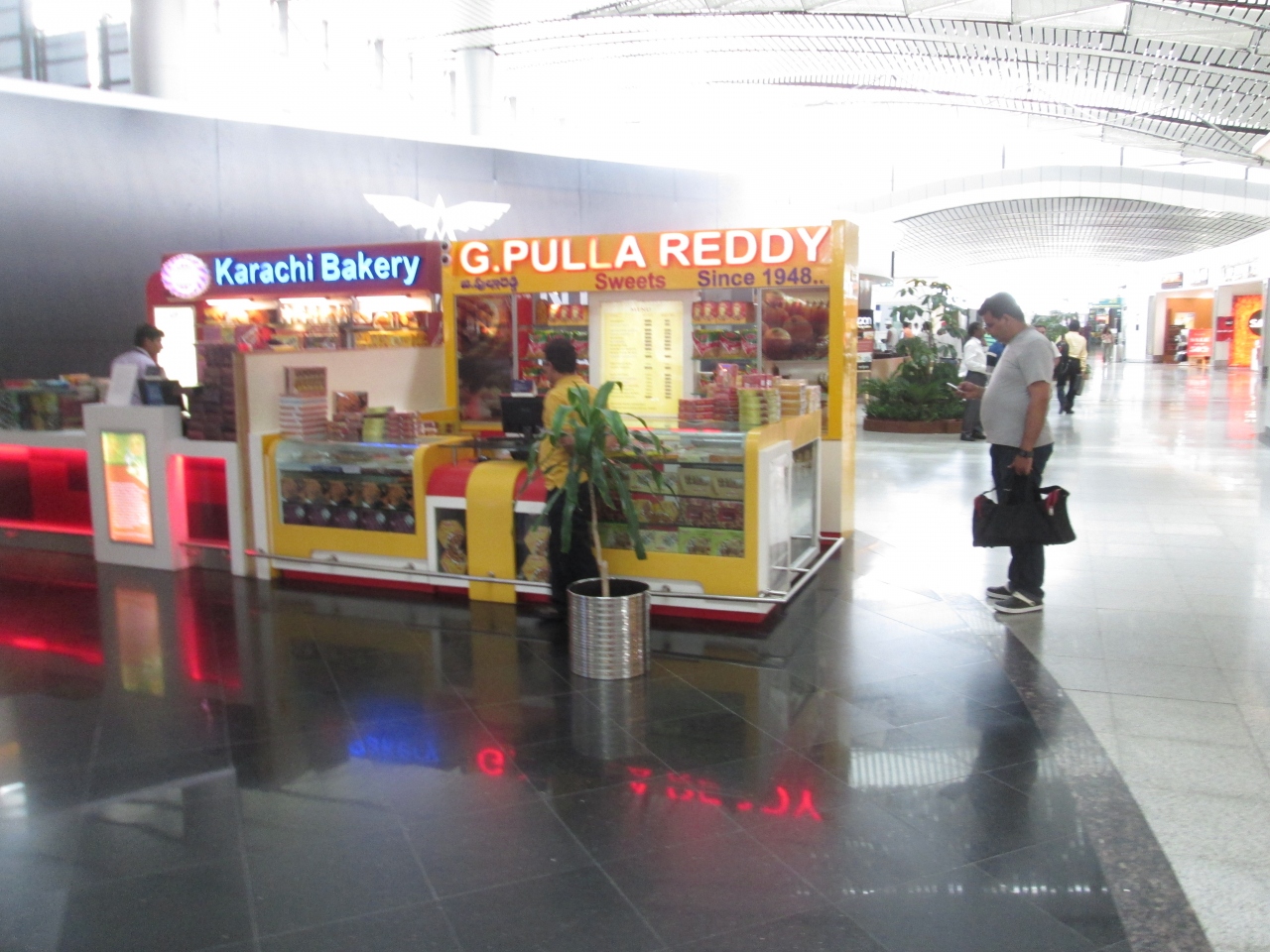 国内線でハイデラバードからデリーに移動する際に利用しました。国内線ターミナルに入る際、パスポートなどのチェックで行列ができていましたが、中に入ると空いていました。搭乗までの時間は椅子が多く休憩でき、ショップ関係も充実しており地元で有名なクッキー店カラチベーカリーなどもあります。