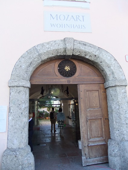マカルト広場の南側に位置しています。ゲトライデ通りにある生家から引っ越してきたのはモーツァルトが17才の頃とのこと。ザルツァッハ川を挟んでいますが、距離は近いです。地図で見た感じでは500mくらいでしょうか。朝一で行きましたが、それなりに見学者がいました。