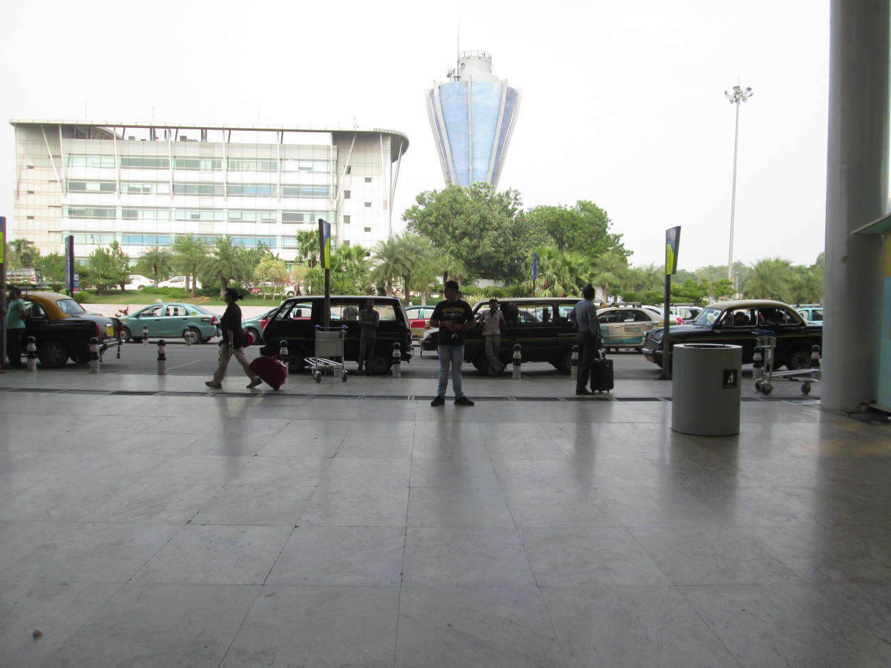 デリー空港の国内線ターミナルに到着しました。ターミナル出口付近には黒地のタクシーが停車しており料金交渉をして乗車します。料金交渉が難しければ、他にもタクシーはたくさん止まっているので変更して交渉すると良いです。