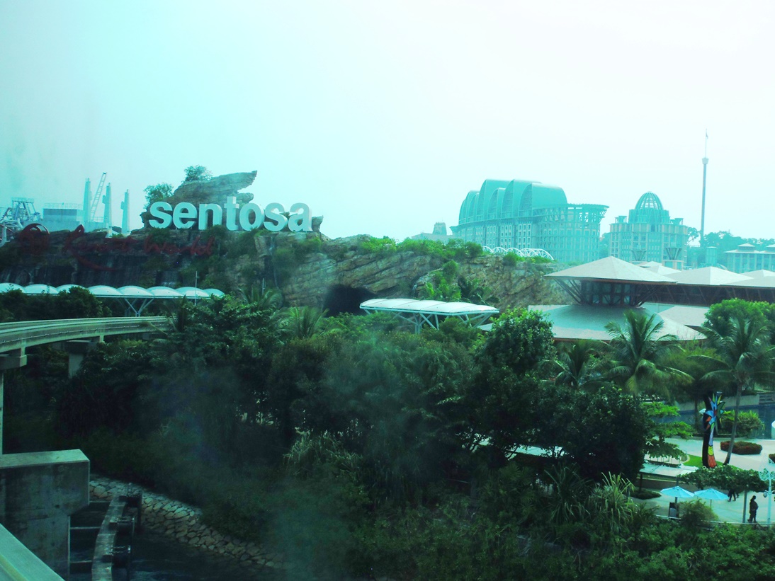 MRTハーバー・フロント駅からセントーサ・エクスプレスに乗っていきました。ユニバーサル・スタジオの他にも見所がたくさんなので、次回はぜひ島内のホテルに泊まりたいと思いました。マーライオン・タワーの後ろから海岸方面に延びている、カラフルなタイルを張った水路のような物がありました。