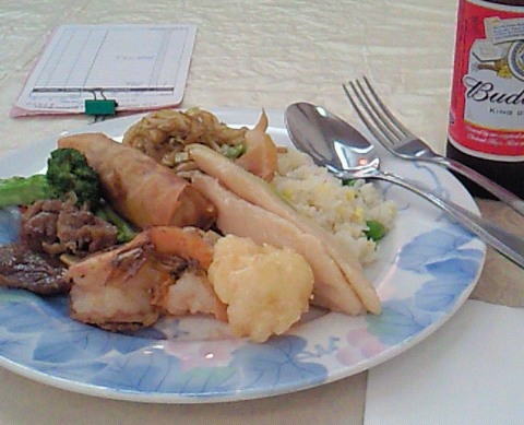 タモンの中央の格安ホテルには意外といいレストランが入っていますが、これもその一つ。部屋代60ドルに対し、夕食20ドルは高い、ということか? 泊り客はほとんどおらず、ほとんどが、外来のローカルです。ビールを我慢すれば、本当に格安でおなかいっぱい、味もなかなかです。ブッフェなので中華ですが、一人でも問題ありません。