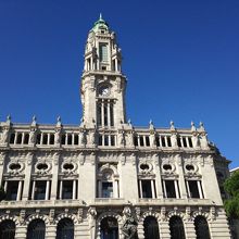 アトラスではないけれど市庁舎を背負っている像が正面柱にあります。中には入れませんでしたが市庁舎中央扉前はバルコニーみたいで絶景スポットです。白く落ち着いた建物でした。時計塔がついていてカッコよかったです。