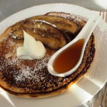 ツアーの朝食でいただきましたがおいしかったです。フレッシュバナナかと思いきや焼いたバナナで味が濃く甘く感じ新鮮でした。パンケーキは大きめサイズですが一枚だけで残念でした。ツアー仕様かな?位置的にも便利な場所なので待ち合わせなどにも良いですね。