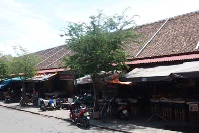 ホテルと観光地区の間にあったので覗いてみました。チャンフー通りに面していて手前が食事屋台・惣菜系・中ほどが乾物や雑貨、奥に肉屋、建物の奥の外に野菜類とエリアが分かれています。食事屋台はあまり観光客向けではないと思います。