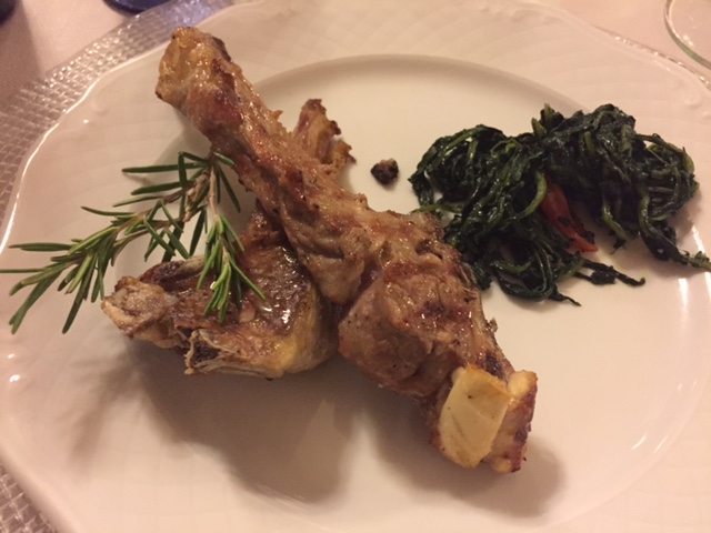 メインの子羊のロースト、アバッキオが最高に美味しいです。脂が全然嫌な香りでなく、骨までかじれます。火の入れ方が本当に上手です。ジューシーで良い香りでした。