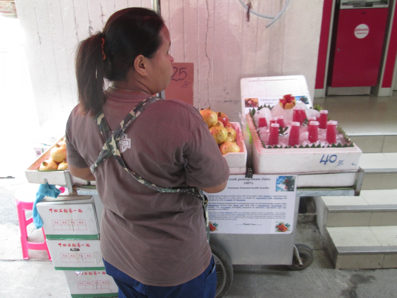 バンコクで人通りの多いところで飲み物屋台を見かけます。スクインピット通りの相場では20バーツから40バーツ程度です。種々のジュースがあり良く利用するのはオレンジ系です。衛生的には問題ありませんでした。