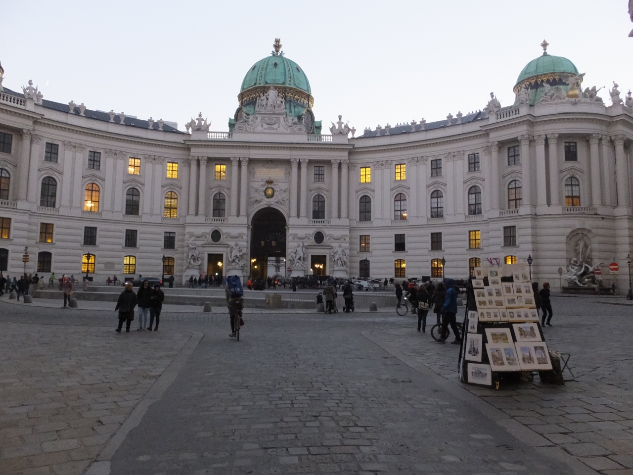 グラーベンからコールマルクトの通りを見ると,遠くに王宮が見えますが,その王宮の正面の門がミヒャエル門です。ハプスブルク家の宮廷文化を肌で感じることができます。門は車でも通り抜けることができます。また,門の前には観光馬車が止まっています。多くの人が写真を撮っていました。