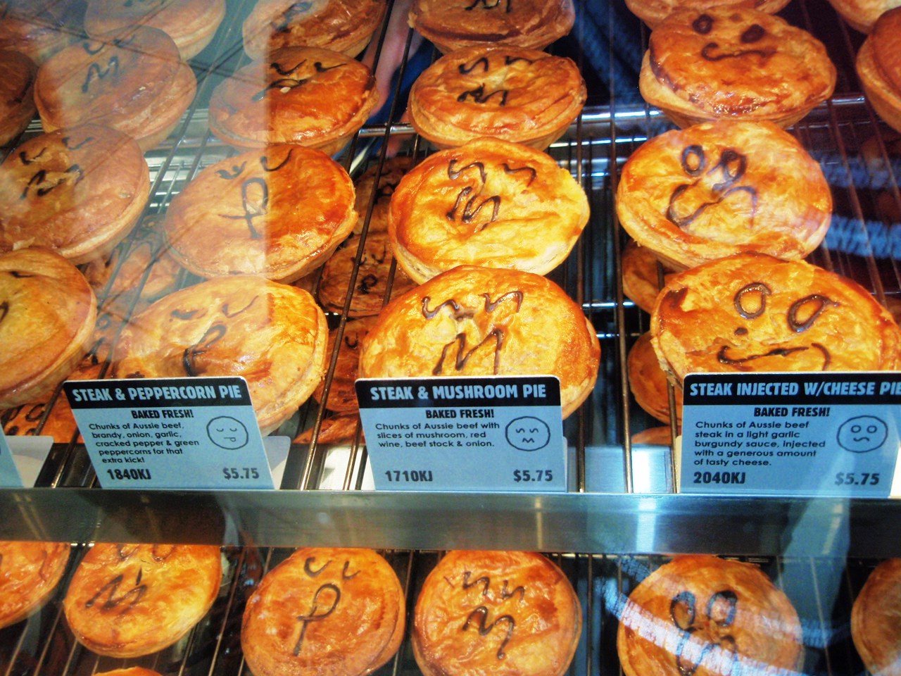 成田からシドニー国際空港に到着して、そのままターミナルを移動。ウルルまでジェット・スターで飛ぶため国内線ターミナルを利用しました。お昼時に乗るジェット・スターで機内で購入する軽食をランチにしたくない、どうしよう!と考えていましたが、国内線ターミナルには、中華やイタリアン等が食べられるフードコートがあります。ジェットスターに持ち込む食べ物、それも食べやすくそれほど高価ではないものとして、トルティーヤラップやサンドイッチ、ピザ、パイをターミナルで購入できます。見た目は小さく1個で足りるか心配になるパイですが、ミートパイ一つでおなかは満たされます。ただパイなので、flakyであり、パイの欠片がぼろぼろと落ちてしまうので気を付けましょう。