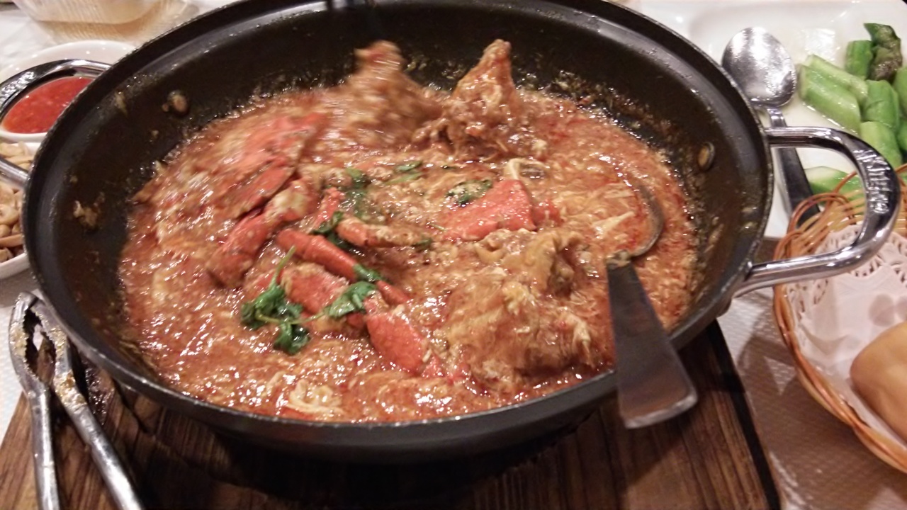 注文したのは、チリクラブ、あげパン、チャーハン、エビのクリスピーなフライ、アスパラガスの炒めもの、ビール。女二人には多すぎました。隣の席の女の子二人は、チリクラブとチャーハンだけだし…