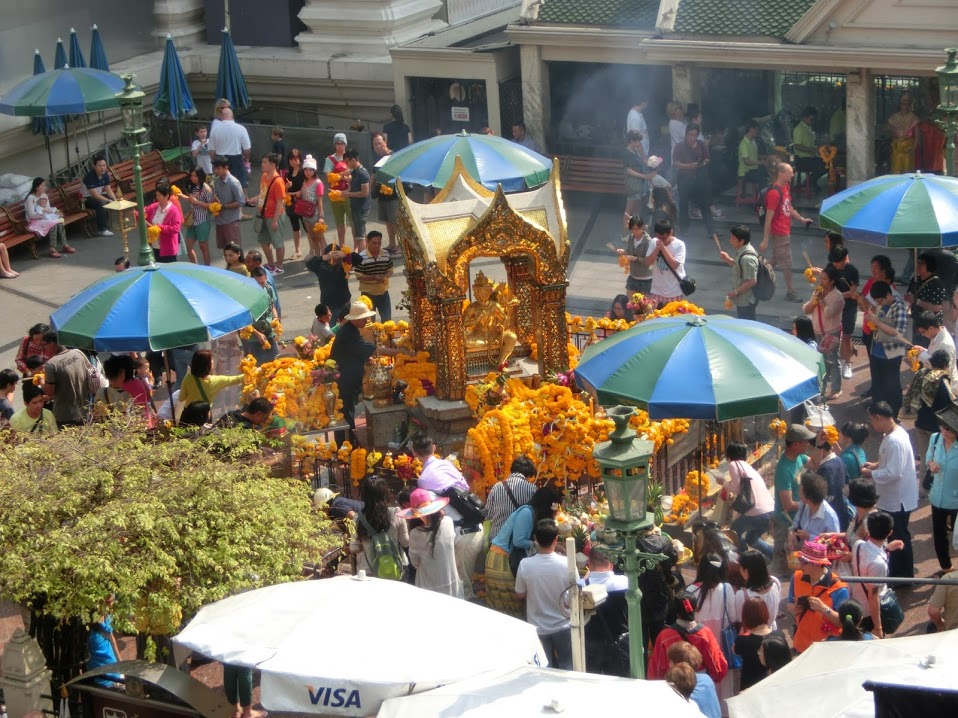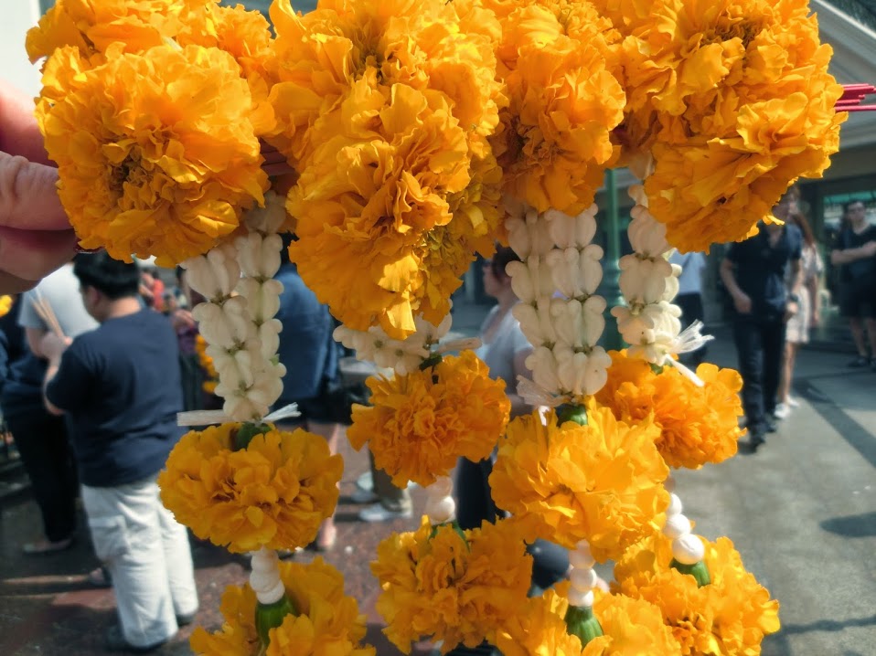 いつ行っても人でごった返してます。日本人よりもタイの現地の方のほうが断然多いかもしれません。お祈り用のお花やろうそく等はここの中で買えます。外で売ってるものはものすごく料金高かったりするので注意してください。