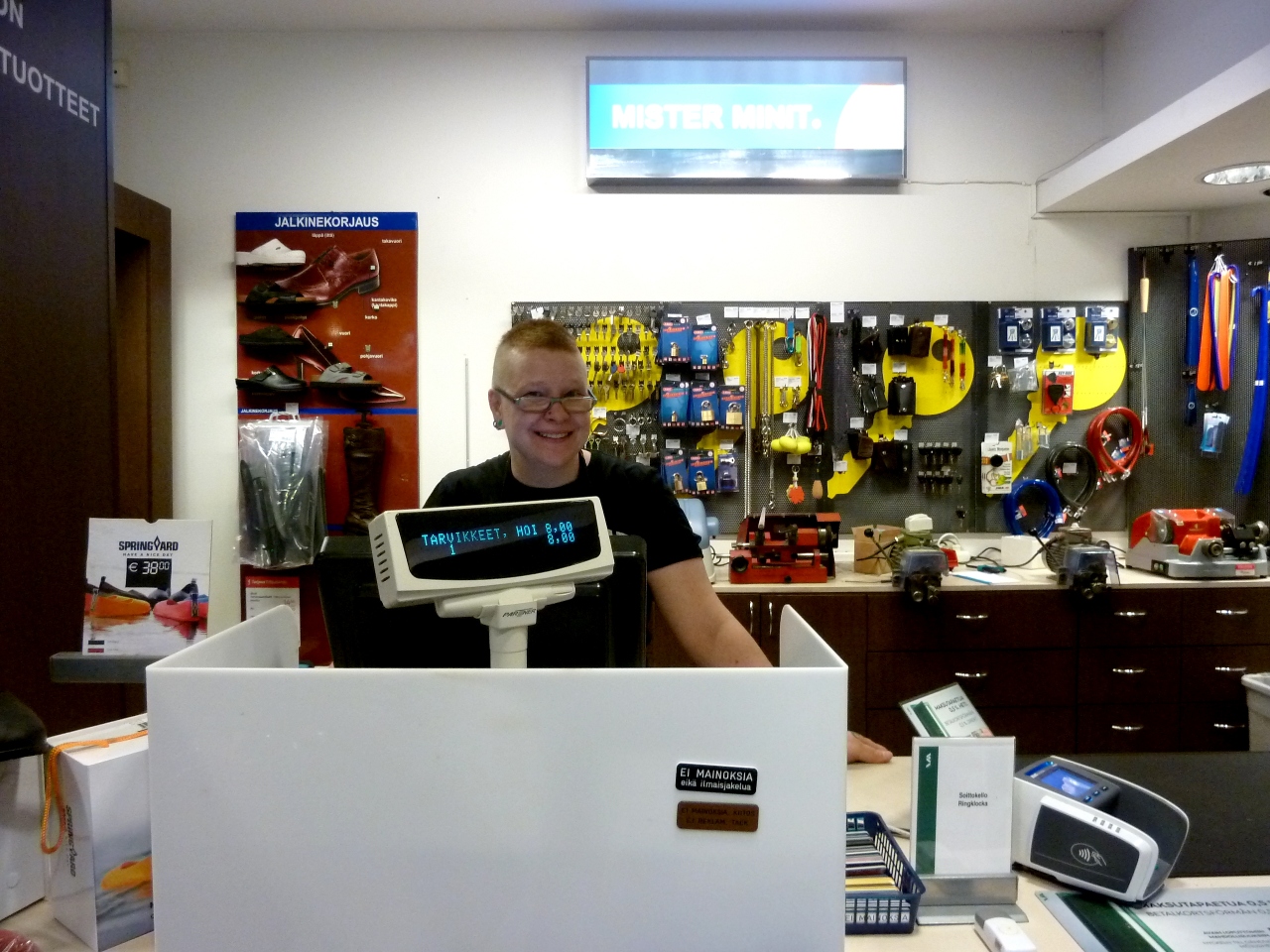 友人の靴が壊れてしまい,困った.Sokosやいろいろなところを歩いて苦労して探したが,ストックマンデパートの地下にあった.10分ほどで修理してくれて7ユーロ!たくさん歩いているとこんなトラブルもある.知っておくと大変便利だ!
