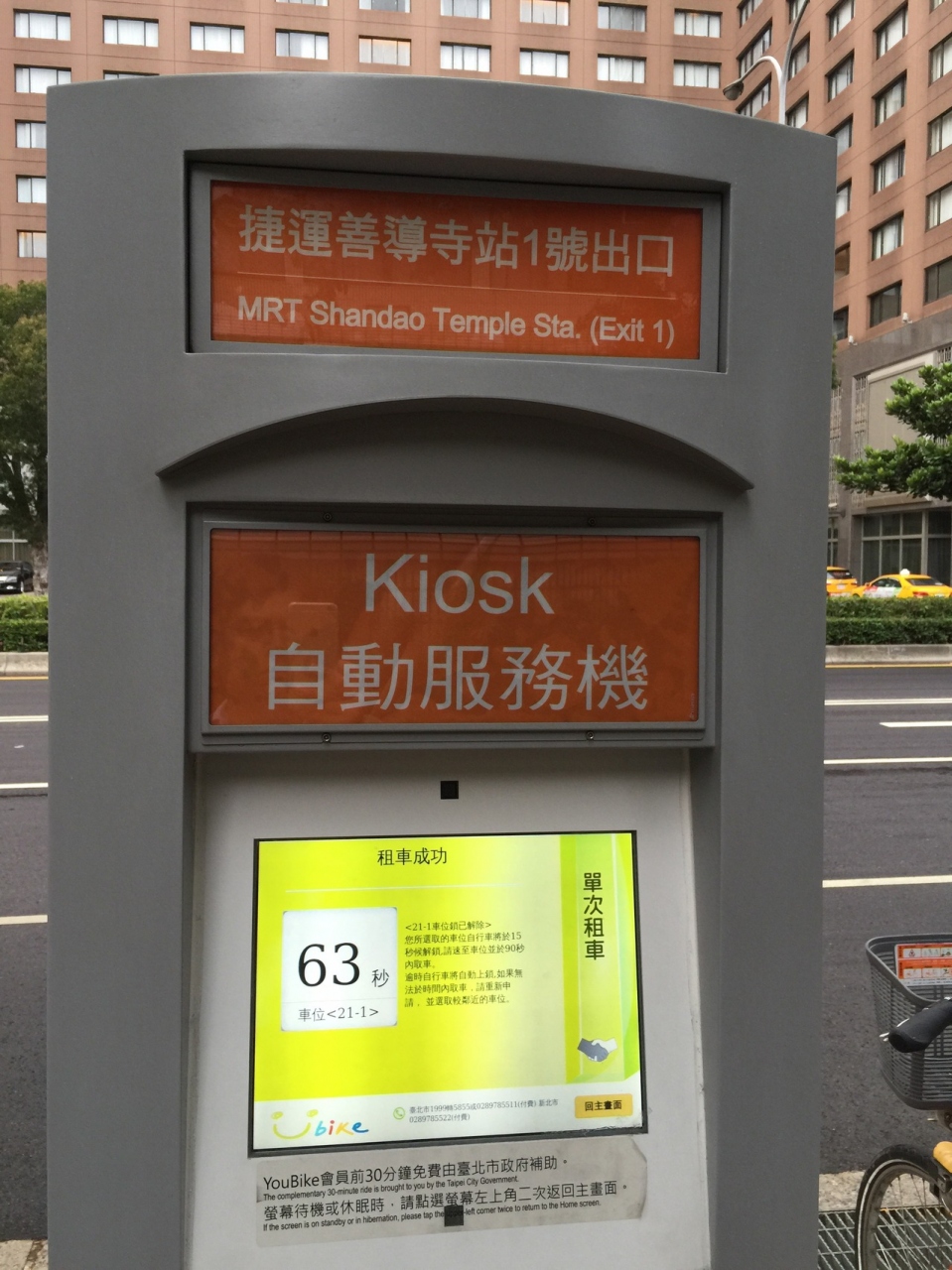 台北市内の移動に非常に便利です。台北市内の各所にあるKioskなる自動服務機で簡単にレンタルできます。台湾での携帯電話番号と悠々カードがあれば簡単に借りることが出来ますが、無くてもクレジットかーどがあればその場でレンタルできます。借りた場所以外でも返却が可能ですのでとても助かります。ただし深夜の駅周辺Kioskでは自転車が出払っている場合が多かったです。