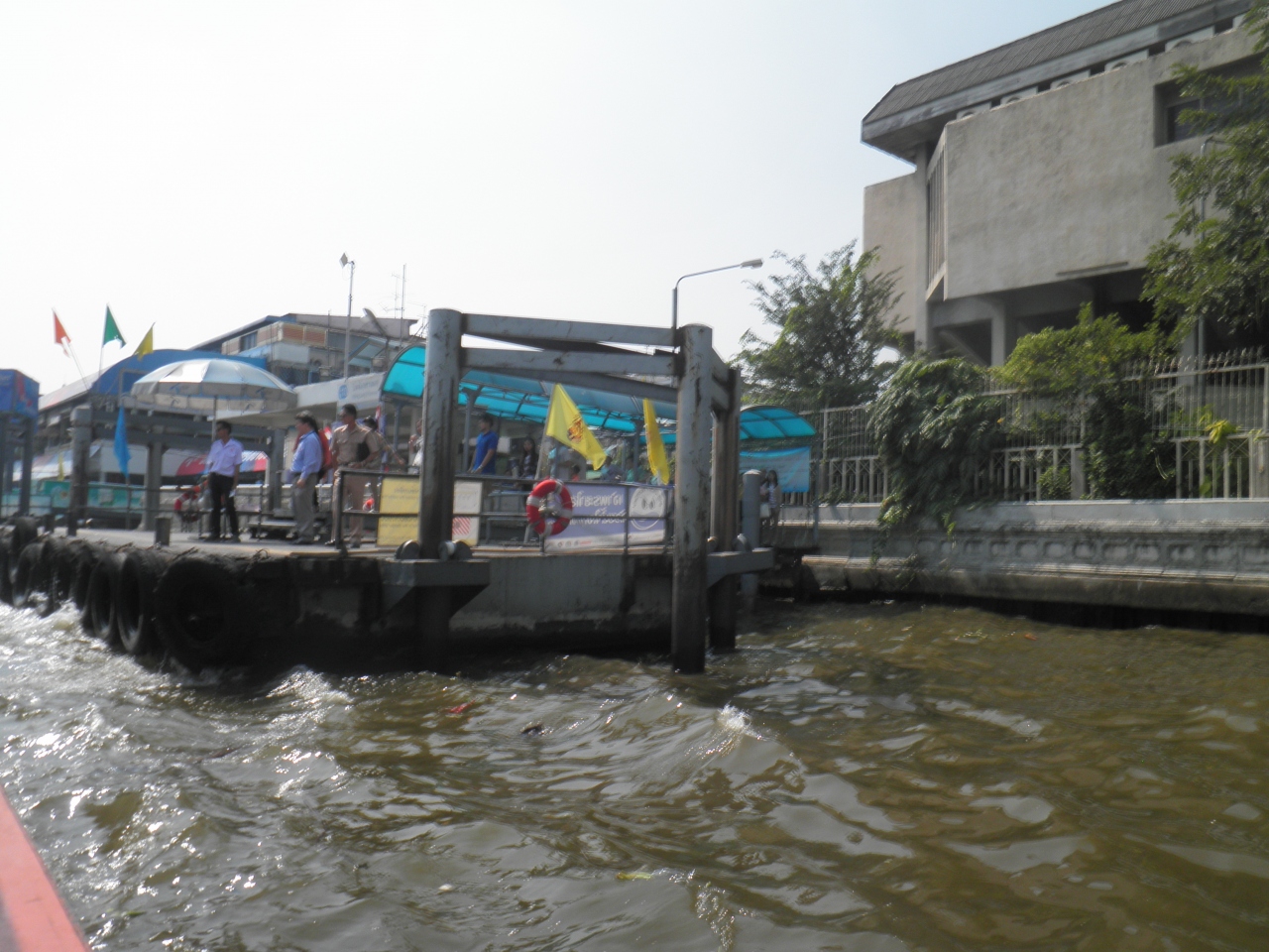 チャオプラヤー川沿いのゲストハウスに宿泊したので、BTSの駅に行くためチャオプラヤーエクスプレスボートに乗りました。 チャオプラヤー川は大きな川なので、風が強いと波があるし、スピードボートが通ると急に大きな波がきます。 エクスプレスボートは、船着き場が簡単な構造で、けっこうボートが揺れて乗り降りの時注意が必要です。