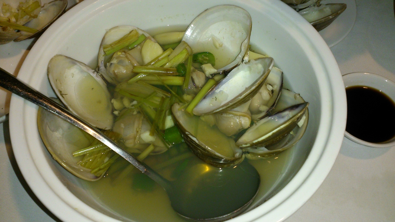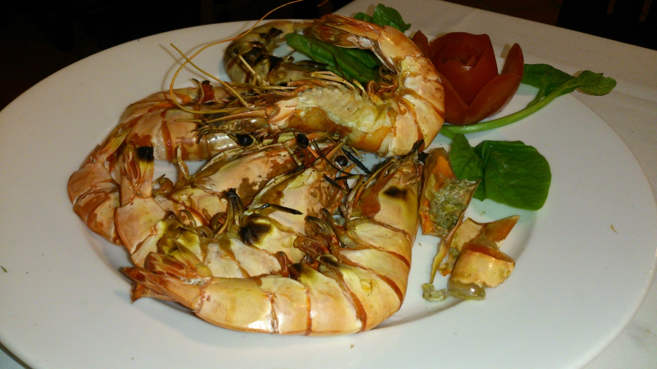 ビーチ沿いのシーフードレストランです。入り口の生簀から魚介類を選んで、何種類かの調理法を選んで注文しました。幼児の拳くらいの蛤10個ほどは蒸して、20cmほどのエビ6匹は焼いてもらいました。ほか、空芯菜の炒め物、ガーリックブレッド、揚げ春巻き、缶ビール2本、缶ジュース2本で4000円くらいでした。飲み物はぬるくて残念でしたが、とても満足のゆく食事ができたと思います。