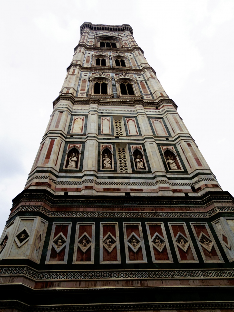 聖堂の一部となっているジョット作の鐘楼。聖堂自体がフィレンツェの顔ともいうべきスポットになっている。その見た目は圧巻で美しさに心を奪われる。日中と夜でまた違って見えるのでどちらも見た方がいいと思います。
