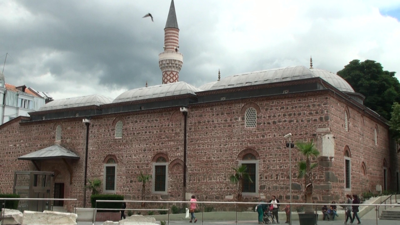 アレクサンダル・バテンベルグ通りの突き当たりに着くとジュマヤ広場に出る。この地下にはローマー時代の競技場跡が残っていてそのすぐ隣に立つ教会が、14世紀にオスマン朝のスルタンによって建てられた教会でダイヤモンド模様の尖塔が目を引く。