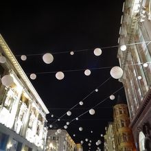ピカデリーサーカスからオックスフォードサーカスをつなぐ華やかなストリート。ショップも並んでいてとにかく楽しいです。天井にはクリスマス用のかわいいライトもスタンバイ。クリスマスシーズンにはライトアップされて雰囲気がますますステキになるそうです。