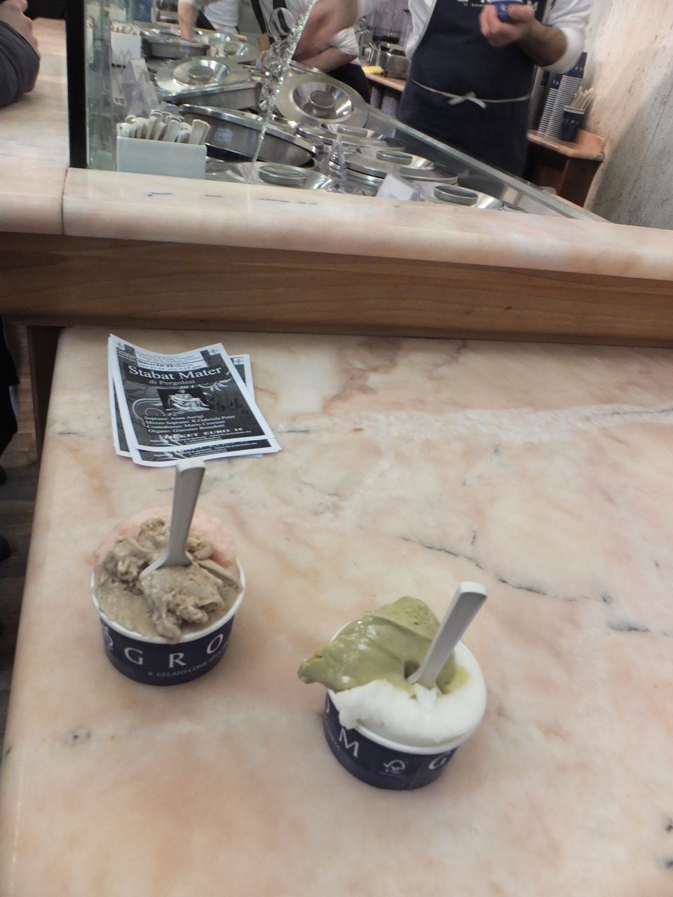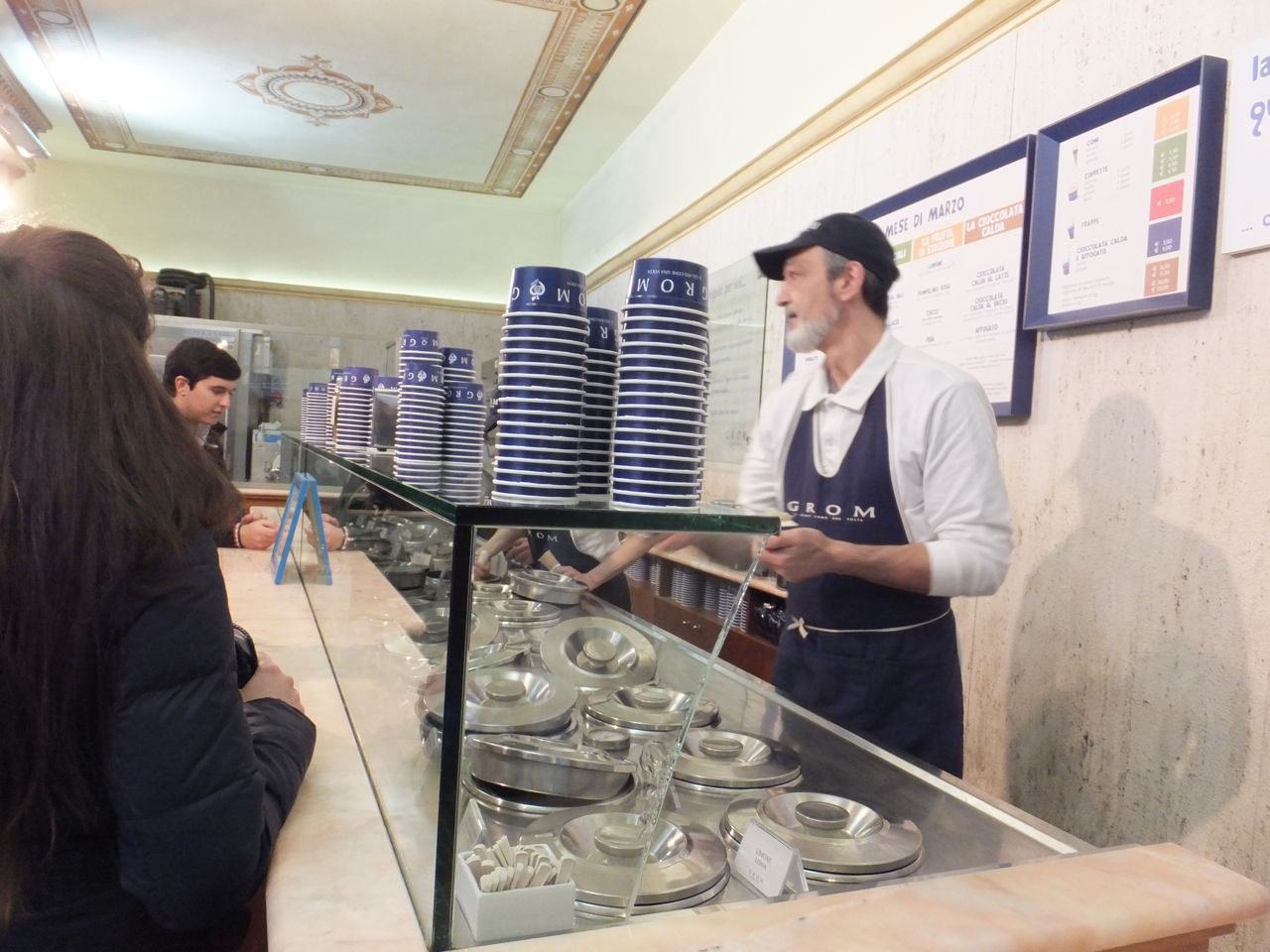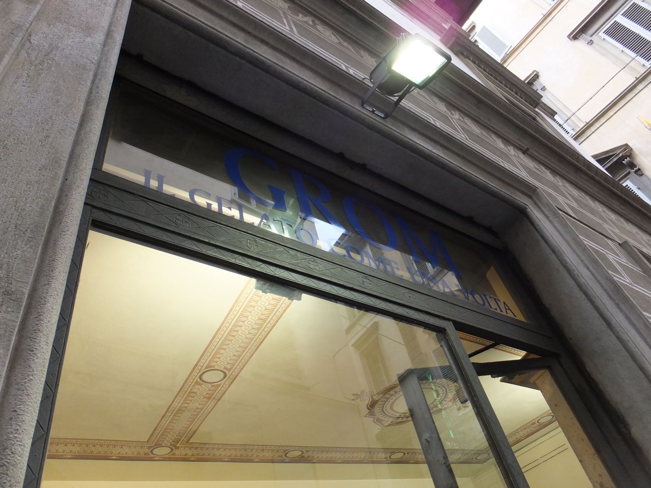 イタリアに来たらジェラートは必ず食べたいな、ということで案内書で一番目立っていたこのグロム。
